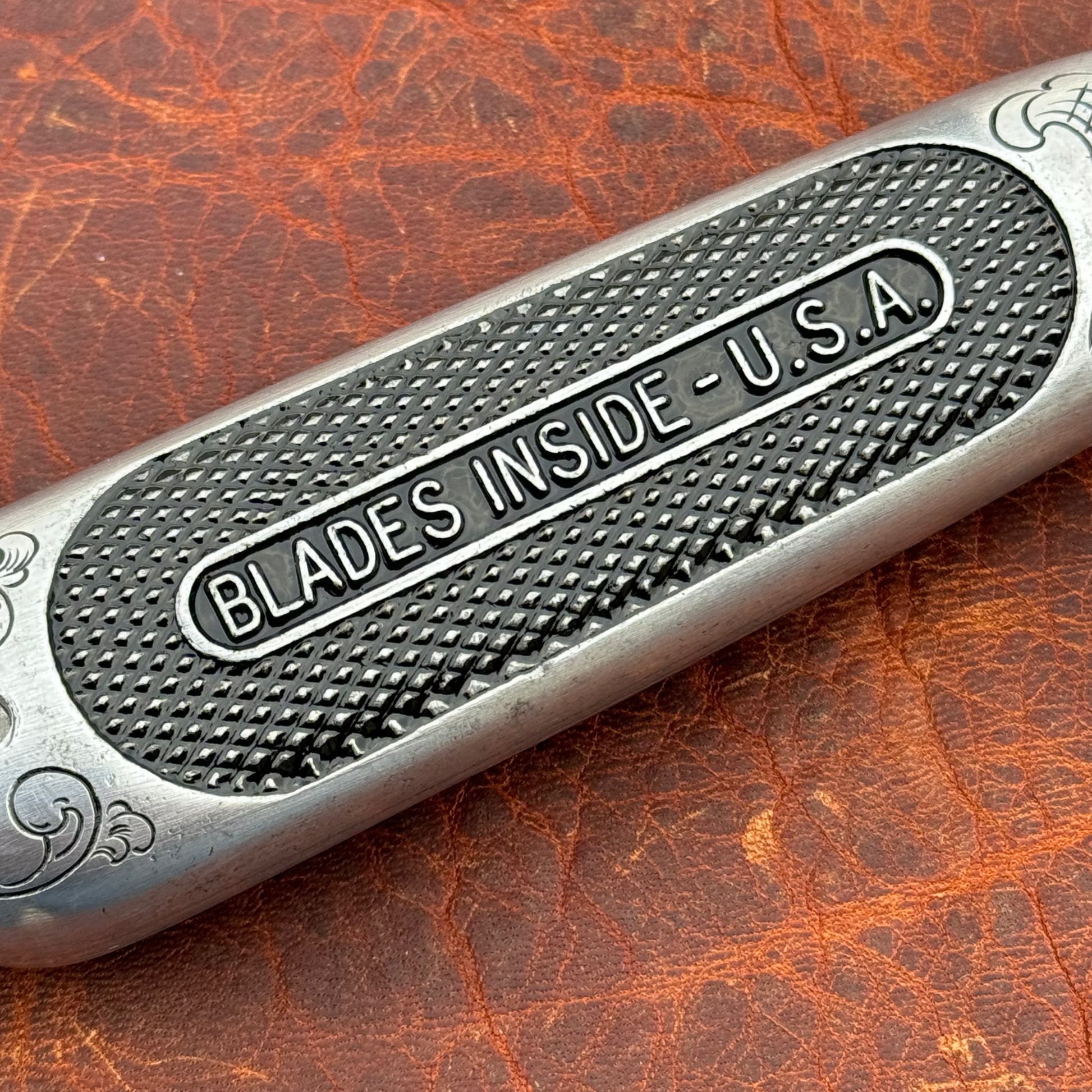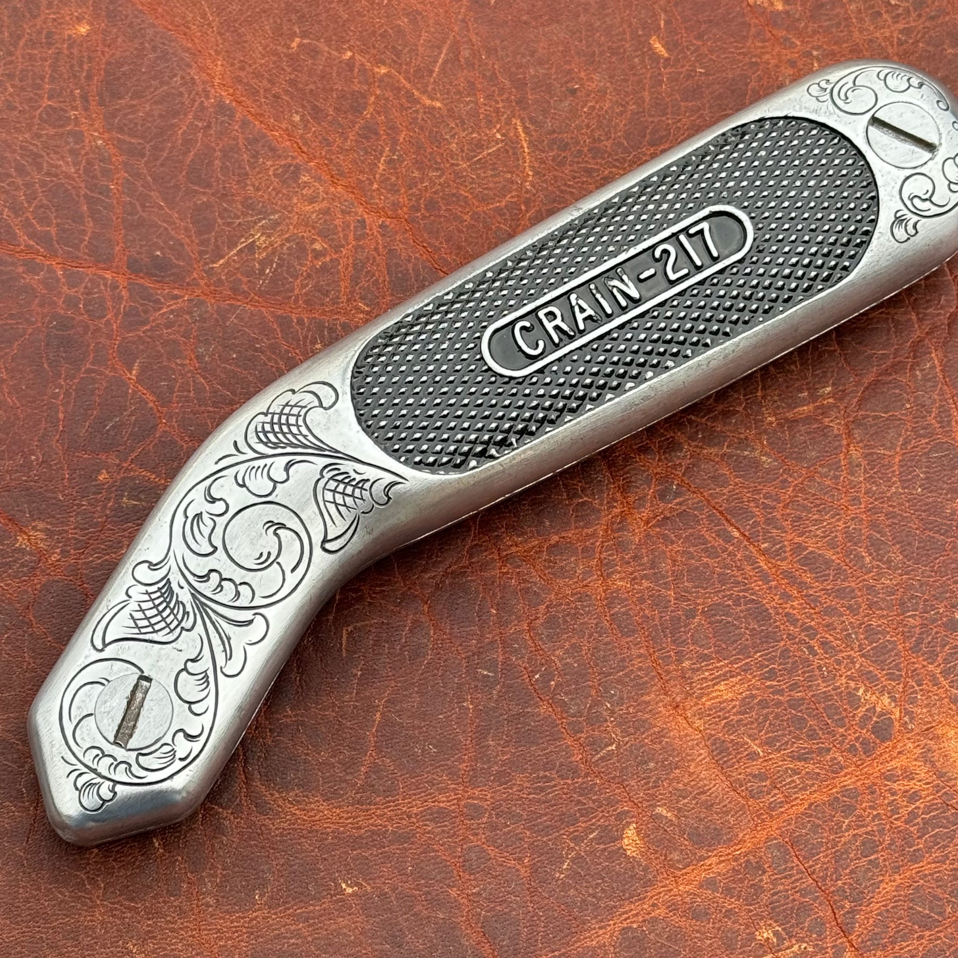 Beautiful Vintage Crain 217 Carpet Knife, hand engraved by The Tool Engraver.